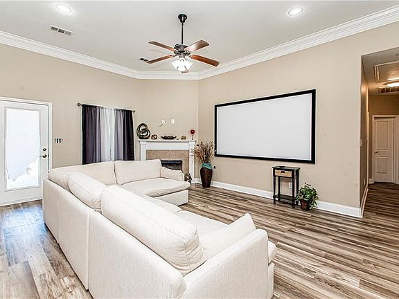 This lovely homes features an open floor plan with a great kitchen. Kitchen features granite counter tops, SS appliances, double sink and the cutest little coffee nook. Home offers a gas fireplace, tile and wood floors throughout and large bedrooms. Home also has a 2-car garage. Outback you will find an oversized fenced yard. One of the biggest in the subdivision. Flood zone X.