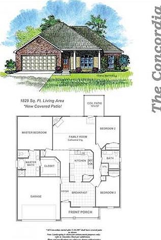 Concordia, 3 bedrooms, 2 baths, cathedral ceiling in the family room, spacious Kitchen whe large breakfas tarea, large master closet, double vanities in both bathrooms. Granite in kitchen, and wood flooring in Family. 2/10 Warranty. Seller incentative $4000 towards closing, upgrades with preferred lender.