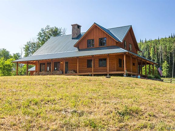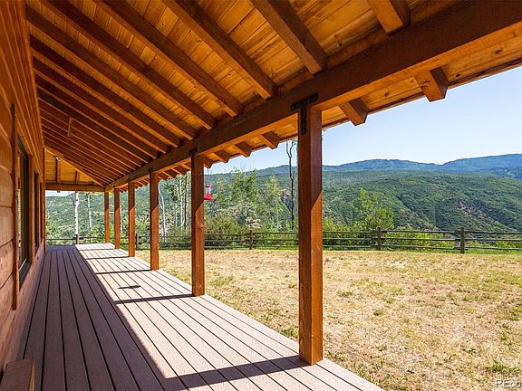 The Elk Spirit Lodge is located ~30 minutes east of Meeker, Colorado, overlooking the South Fork of the White River Valley. The fully fenced 89.8 acre property has open meadows, pines, aspen and maintained access roads throughout. The main home sits at 7,500' in elevation, with over 3,400 SQFT of living space showcased by a floor to ceiling native rock fireplace and panoramic views of the valley. The energy efficient home well exceeds insulation standards, utilizes fresh mountain spring water and radiant in-floor heating. The adjacent 2 car garage has a walk-in cooler and workspace. A lush pasture with loafing shed and spring water is within view of the main home, a barn and hay shed sit just below the home. A guest house, garage and RV hookup are located at the base of the property. Abundant wildlife roam the property, including elk, deer, moose, bear, bobcat, turkey and grouse. This property is in Colorado Game Unit 24.