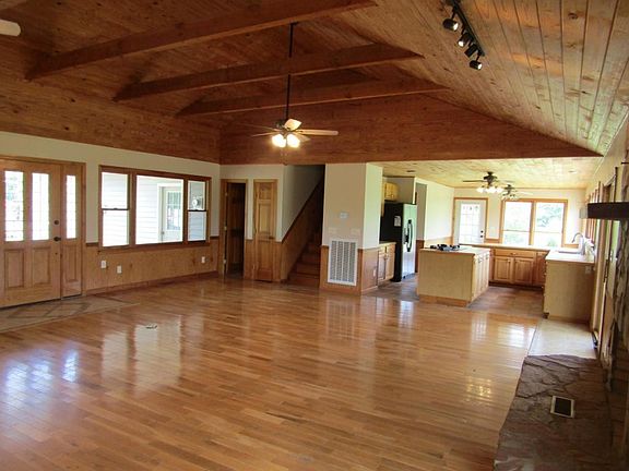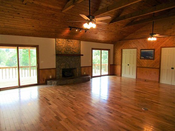 Stunningly unique and beautiful custom home and farm. A dream property tucked into a perfect mountain view on 43 acres. Two out buildings, horse stable, two ponds, a creek, and a tennis court. Salt water pool and wrap around deck. Gorgeous sunsets and beautiful memories for your family can start here. Master on main level. There is a third room upstairs that was previously used for a fourth small bedroom. Also separate laundry room downstairs and small room for possible office. Beautiful open den/kitchen/dining spaces with flawless hardwood floors. Custom wood ceilings and windows galore for a fantastic view from every room in the house. New heat pump and new metal roof. Gas stove, water heater, and fireplace. Truly a special place to call home!