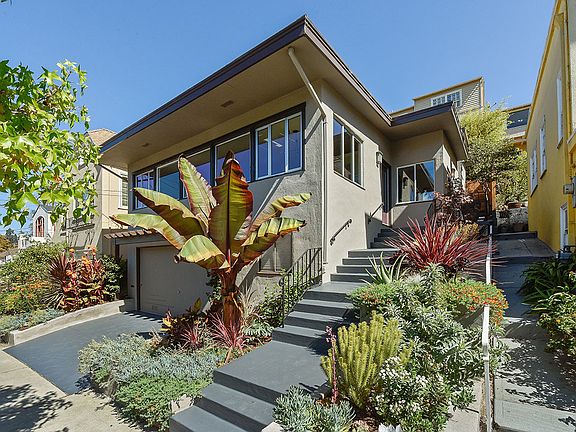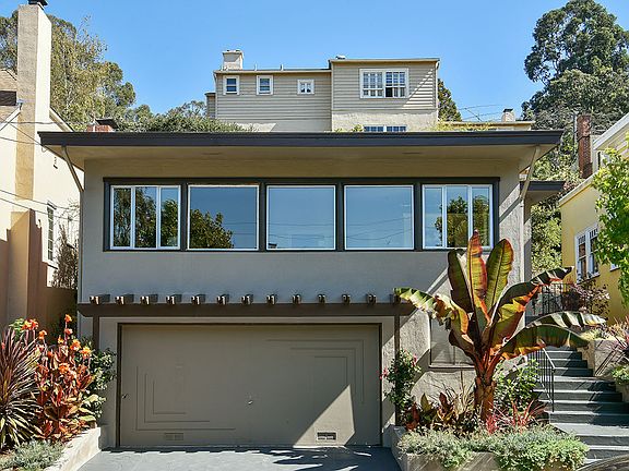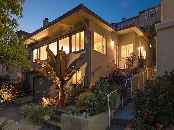 MODERN LOVE A mid-century home impeccably updated! Set in Upper Lakeshore on a quiet, tree-lined street, this modern beauty hits all the high notes. The street view is handsome and nicely landscaped; a banana palm and succulents strike a particularly California tone. Inside, a small foyer leads to a large, open living room. Simple and sophisticated, a big bank of windows with great outlooks onto the street make this space feel extra bright and spacious. A stone fireplace anchors the room, and at the other end, the dining area looks out onto tree-filled views. It's a chic and comfortable space, conducive to easy entertaining. The eat-in kitchen has a classic feel. High ceilings, nice architectural details and lots of light make this room the heart of the home. A side door leads out to either the front or back yards, and a corner desk by the window is a great place for a home office or homework spot. Tile floors, a glass subway tile backsplash, granite counters and high-end appliances bring style and comfort together effortlessly. A bedroom across the hall has an en suite bathroom and a wonderful built-in desk and cabinets. Up the stairs are two more bedrooms and a sleekly-designed shared bathroom. One bedroom has French doors out to the patio in back. The master bedroom has a slanted high ceiling, a door to the yard and lots of light and pleasing views from the windows. The yard is like an outdoor salon - slate tiles, built-in benches, tiered garden beds, horizontal fencing and a redwood deck create depth and lots of visual interest. It's a peaceful spot, lovingly landscaped. Downstairs, the family room is another happy surprise: carpeted, insulated and wired with a sound system, it works well as a media room or any number of uses. A wine cellar and extra storage are yet more bonuses. The charm factor and livability is high here. Add to that its superb location in the Lakeshore district, with its fabulous Crocker Highlands schools and proximity to Lakeshore Avenue shopping, the Farmer's Market and some of Oakland's best restaurants. This historic area is also minutes from Lake Merritt and affords easy accessibility to San Francisco by car or public transportation. A fresh and modern classic in an exemplary location, this is a home to relish.