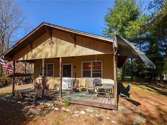 This cozy 3-bedroom ranch is located in the Leisure Lands community, set on two lots totaling 0.91 acres with a low HOA. The home features an open-concept layout with a vaulted wood ceiling and a wood-burning fireplace, creating a warm and inviting space. The kitchen has been redone with plenty of cabinetry, perfect for all your storage needs. One of the bedrooms is currently being used as a laundry room, adding extra convenience. The property includes a newer roof, a tankless hot water heater, and a detached two-car garage. A large front porch offers the perfect spot to relax and enjoy the peaceful surroundings. This home is being sold as is and needs a few finishing touches, making it a great opportunity to customize it to your liking. Whether you’re looking for a full-time residence or a weekend getaway, this property offers a blend of comfort, charm, and potential.