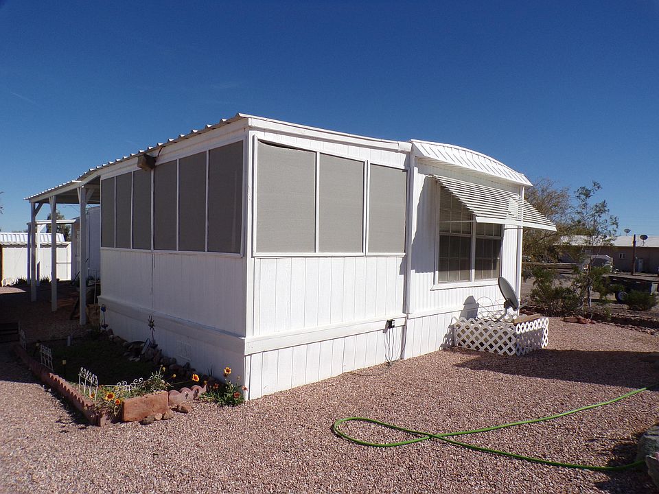 OWNER MAY CARRY WITH SUBSTANTIAL DOWN. 1.22 fenced acres, landscaped with 1 bed 1bath older manufactured home, very clean interior. Nice AZ room, deck area for relaxing. 2, full service RV hookups with double gated entry for easy access.. Exterior laundry room, a 8x20 container for storage, carport. This is the perfect winter getaway or full time. You decide. Check this out today.