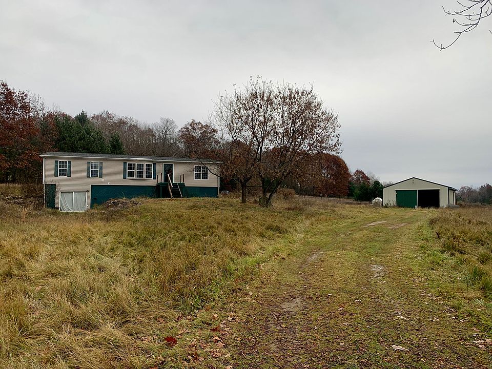 There is a lot of room here at a very affordable price. Great country living with plenty of room for horses, chickens or whatever it is you need room for. Mostly open 10 acres with a 1680 Sq. Ft. Manufactured Home that sits on a full walkout basement. There is a detached 30 x 40 pole barn that has electric on a dirt floor. The rooms on the main level are very large and the walkout basement gives you a lot more room for whatever it is you want. There are a couple of rooms sectioned off that could easily become additional bedrooms if needed and there are several egress windows there plus a sliding glass door. This home just needs your personal touch to make it your own.