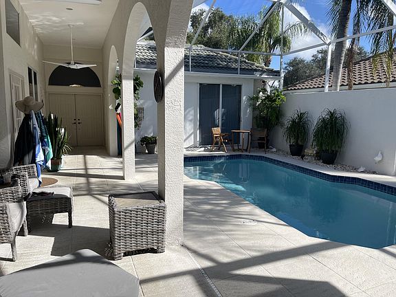 Welcome to 4268 Hampton Lane! Fully furnished 3BR/3BT. Step into your private sanctuary: a courtyard-style lanai that promises serene moments facing the eastern sky. At the heart of the lanai lies a heated pool, perfect for year-round dips. Whether you're looking for a refreshing morning swim or a soothing evening float, it's all yours! Reside in one of Naples' most coveted neighborhoods. Naples pristine beaches, upscale shopping, delectable dining, and rich cultural offerings are abundant. You will enjoy all the amenities of the gated Longshore Lake community, including tennis, fishing and kayaking, and convenient proximity to the Quail Village private golf club and the public Arrowhead Golf Course. The attached two-car garage ensures your vehicle's cleanliness and safety from the elements. Everything you need for spontaneous beach days is at your fingertips. This beautiful home leases for 3 months minimum per HOA. Rent covers Xfinity TV/ HS Internet + Wi-Fi, landscaping, weekly pool service. Rent does NOT include 11% State & County Sales/Use Taxes. Renters pay electric utility. Deposit is refundable less unpaid utilities, cleaning fee, and damages/theft of items. No dogs. Cats ok. No indoor smoking. HOA application fee is $150 + background check $50 for all persons over 18.
