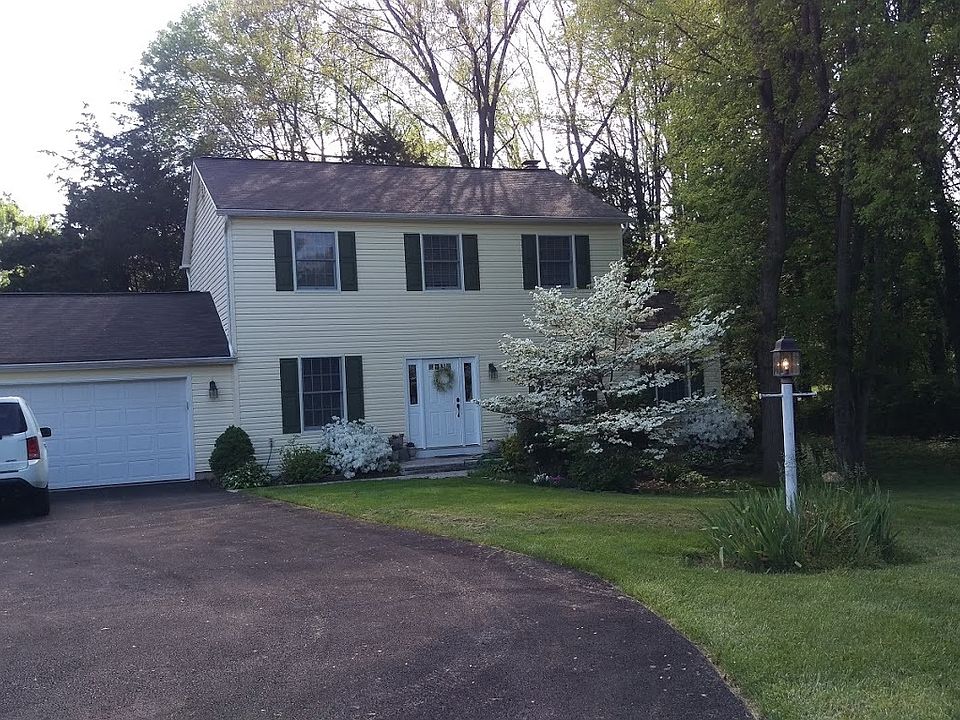 Centennial Schools! MOVE-IN ready colonial with oversized garage and shed. This former model home is perfectly situated on a cul-de-sac, close to schools in a peaceful, quiet neighborhood. Custom kitchen with Corian countertops, hardwood floors throughout. Kitchen is open to family room with wood burning fireplace. MBR with 3 closets, renovated bath and huge tile shower, all BRs with ceiling fans. Tiled lower level with laundry and workbench, large screened in porch and deck that overlook a half acre private lot.. Pet friendly with installed Invisible Fence. Near Centennial Park and Dorsey Search Village Center. Hurry, this home will not last long!