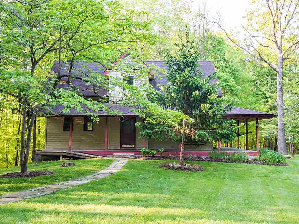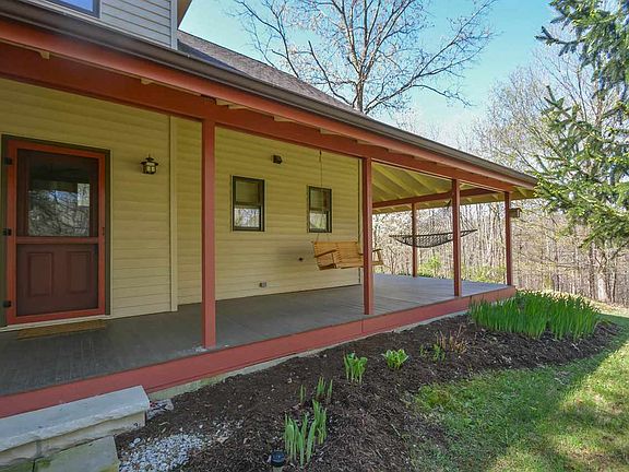 Drive down the private lane through the woods and you will find this picturesque 1 1/2 story home on 20 acres of mature timber. Its location adjacent to property owned by Sycamore Land Trust adds to the peace & quiet found off the beaten path. You will enjoy the green lawn, flowers and flowering bushes & trees along with the solitude of the forest from the 560 SF covered porch. The Herndon Design home was built in 1986 and stands the test of time in terms of quality, functionality and design. It features an open floor plan, hardwood floors, a wood burning stove, built-in shelving and large rooms. All new appliances have been installed. Hardwood floors have been refinished. Freshly painted. The home is wired to be powered by a generator (included in the sale) should the electricity go out. It was re-roofed in 2010. HVAC and gas water heater were replaced in 2012. High-speed internet is available through AT&T or Comcast. The house sits on a 5 acre parcel. The additional 15 acre parcel is designated by DNR as Classified Forest. Included: generator, a porch swing, wood stove, stone bench & hammock.
