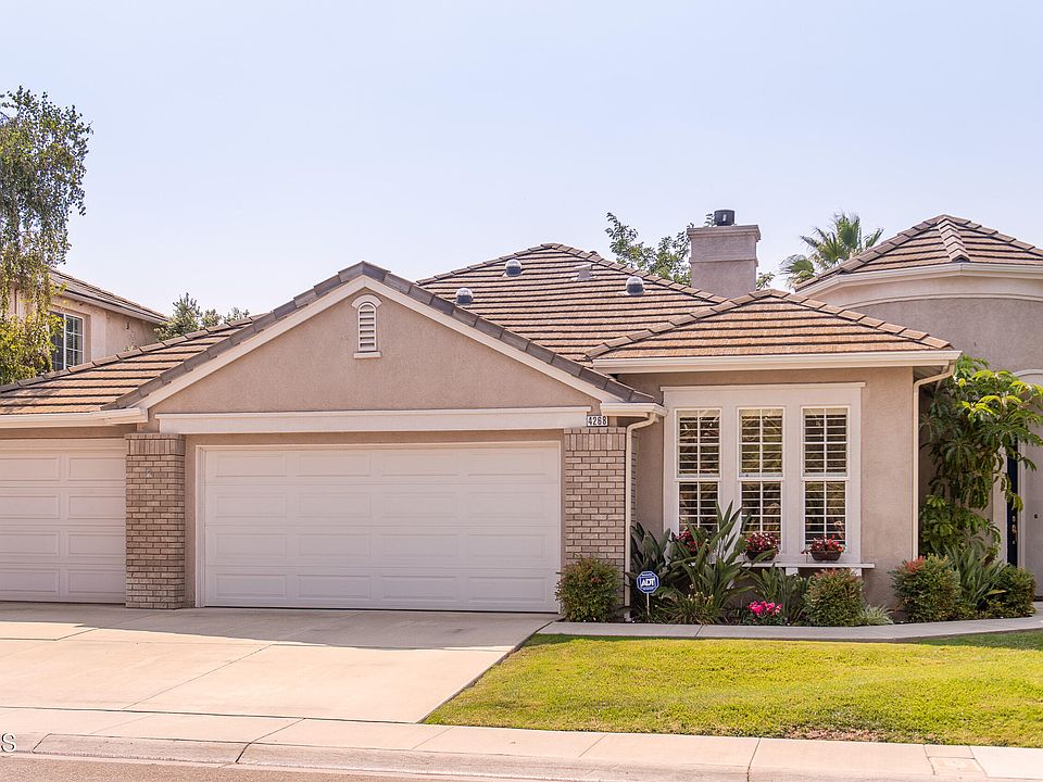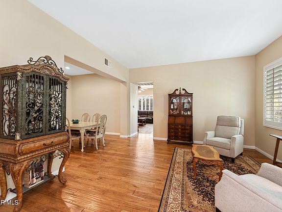 Gorgeous well-maintained, single story home, in desirable Dos Vientos. Move-in ready, just steps away from the Santa Monica Mountains National Park on a quiet cul-de-sac. This home features 4 large bedrooms, 2 full bathrooms, an indoor laundry room, a sought after 3 car- garage, and 10-foot-high ceilings! The grand circular entry leads to a spacious formal living room with adjoining, formal dining room, with hand-scraped hardwood flooring. Upon entering the open concept chief's kitchen, you will notice the oversized island with a built-in wine fridge and Thermador range, perfect for cooking and entertaining with friends. The kitchen opens up to the large family room with a cozy fireplace, and plenty of natural light. The Kitchen has direct access to the covered patio, fountain and serene backyard, great for those back-yard BBQ's. The private garden features mediterranean and tropical plants throughout. The sun-filled primary bedroom leads to the large bathroom with dual vanities, soaking tub, shower, separate water closet, large walk-in closet and built-in ironing board. The guest bathroom has dual vanities and a separate tub/shower/WC room. The wrap-a round hallways are drenched with natural light and lead to the additional bedrooms. One bedroom set away from the others perfect for a home office or a special guest. The home has been recently painted and shows pride of ownership in every detail. All the appliances have been recently replaced, including a Bosch dishwasher, Zephyr hood, and the water heater. This home is super energy efficient and has dual pane windows throughout adorned with plantation shutters. The garage has a built-in workbench and cabinets for your special projects. The lush landscaping in the front and rear yards have been recently re-planted with water efficient plants and a drip irrigation system. This home is in a prime location and is near many beautiful parks, hiking trails, world class shopping and award-winning Sycamore Canyon K-8 school. It is so refreshing to find a gem like this, that leaves the hustle and bustle of the city behind, as you drive up the hill to your new retreat. Homes like this do not come on the market very often and are rare. Don't let this mountain view home get away from you