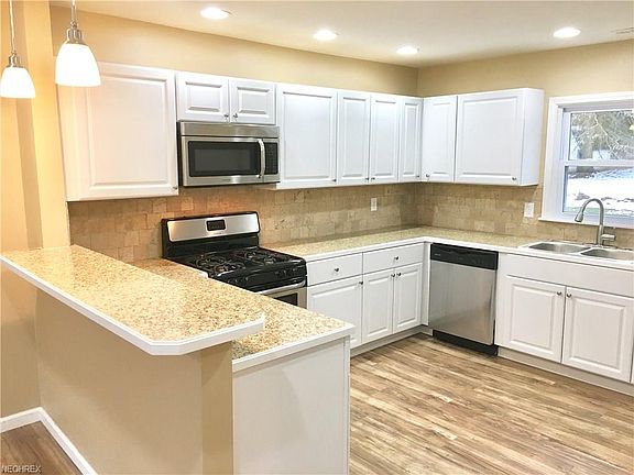 Welcome to our stunning and completely remodeled ranch in Norton! First floor living with 3 bedrooms, large closets with lights. High pressure laminate wood flooring in kitchen and living room. All new kitchen with white cabinets, counter tops, breakfast bar, new stainless appliances (refrigerator, dishwasher, range and microwave), recessed lighting, pendant lighting and more. Oversized family room with bay window and new slider leading onto a new deck. New carpet throughout too. Brand new main bathroom with comfort height vanity and half bath. Mudroom from garage and a first floor laundry. Wood-plank ceramic tiled flooring in laundry and all bathrooms. Attached large 2 car garage with a brand new concrete driveway. New roof and vinyl siding and vinyl windows. Brand new well 2017 and updated mechanicals. Everything is clean, painted and ready to move in now!