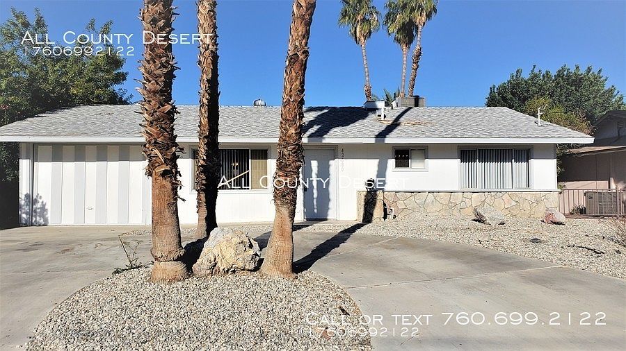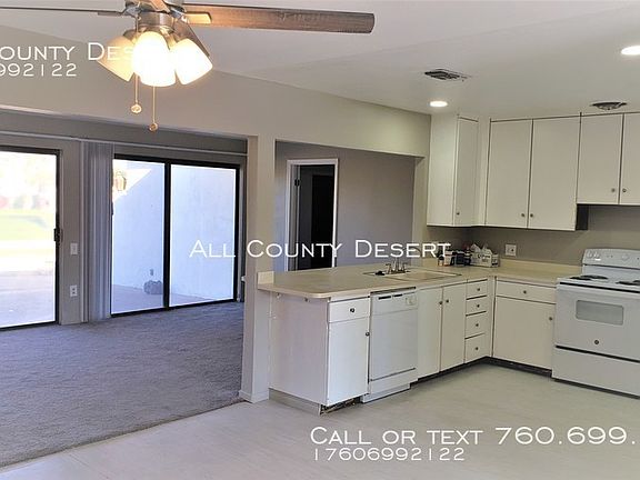 Spacious 3BR/3BA unfurnished home for long term lease in Palm Desert Country Club. This home features a large, open living, kitchen, dining, family room with fireplace and three sets of slider doors leading to the patio area located right off the golf course. Large eat in kitchen with new stove and recessed lighting. Bring your own refrigerator. Two master bedroom suites. The rear master bedroom suite features sliding doors leading to a private patio area. Interior laundry room with washer/dryer hookups. Single car attached garage in the front and golf cart garage in the back with direct access to the golf course. Tenants to have access to community pools, spa, tennis courts, clubhouse, and fitness room. Golf is pay to play. HOA fees, trash and quarterly gardening services included in the rent. Tenants to pay all utilities. All applicants must pass a comprehensive background screening including income verification and landlord references. Renter's insurance is required. All applicants must have the following: monthly income of three times the monthly rent, no prior evictions, good rental history, no previous felonies, and an acceptable credit score. Call for an appointment today!!. If you see this home advertised online for less than the rental amount quoted here, the ad is a SCAM. We are the only authorized agent for this property. Please email us a link to any bogus or fraudulent ads so we can report it to the appropriate authorities. Please do NOT send money to anyone who offers keys in exchange for a deposit check - especially if they are out of state. When in doubt, please feel free to contact us.