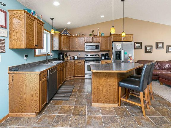 Convenient LOCATION! This home has quick access to I94 & I29. Add equity in finishing the 2 additional bedrooms & bathroom in the lower level; turning it into a 4 bedroom, 3 bath! Appreciate the vaulted ceiling and open concept of the kitchen, dining and living area upstairs. The master bedroom has a private 3/4 bath and walk-in-closet.Includes: kitchen appliances of fridge, range, microwave, & dishwasher; washer & dryer; & yard play set. (finished sq, ft, lower level is estimated) Open House Sun 8/21 1 - 2:30