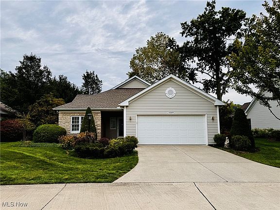Beautiful free-standing ranch vinyl & stone cluster home offering breathtaking views of a serene lake in one of Avon's most sought-after communities. Enjoy low-maintenance living with a modest association fee that covers snow removal, landscaping, walking trails and even goose control for lake/pond, making life easy and stress-free. This beautifully updated home features a lovely front porch, three spacious bedrooms, two full bathrooms, a bright 3 season sunroom, a cozy gas fireplace with blower in the living room, a nice size dining room and bonus room off the living room area and a private deck overlooking the lake, perfect for relaxing or entertaining. The open-concept floor plan includes a modern kitchen with granite countertops and stainless steel appliances. A large 2+ car attached heated garage provides plenty of storage and convenience. This property also includes an extra parcel of land in the rear #04-00-024-105-163, providing extra rear yard space. Don't miss the chance to make this exceptional property your new home. Please note room sizes are approximate and are not guaranteed.