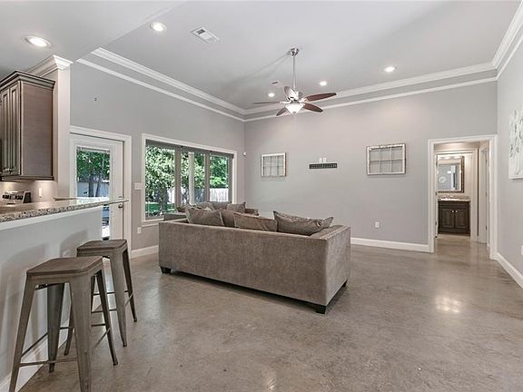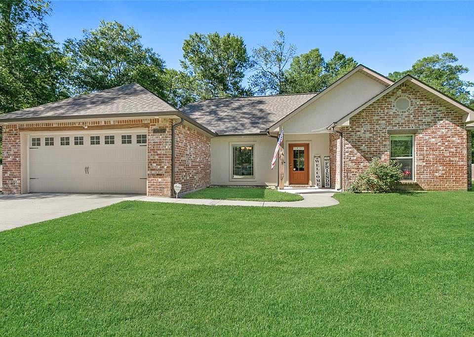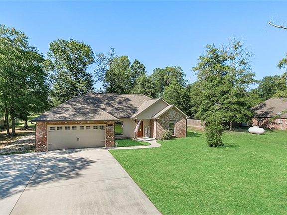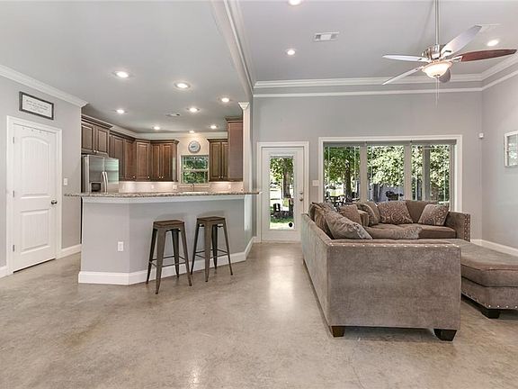 View this beautiful custom built home on over half and acre. This home has stained concrete floors, Granite countertops, big kitchen with custom cabinets, beautiful picture windows to enjoy the view of your beautiful outdoor area. Long porch with two daybed swings, a large raised wooden deck, and a grassy area around a brick fire pit. Owners added an extra parking pad next to the driveway that leads up to a 40+foot gravel drive that would make the perfect spot for a boat, RV or trailers. This is a must see! Flood zone X never flooded. See photos for more notes.