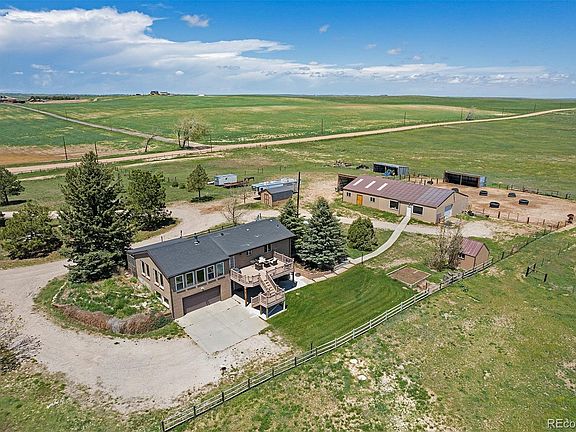 Come and enjoy the perfect property for equestrian and livestock enthusiasts! 60 acres with a host of improvements that make for a smooth and efficient operation! Multiple outbuildings; 40x70 building with 4 stall barn, tack room, workshop, auto workshop with bay door, loafing shed, tractor shed, hay shed, 2 storage sheds*Picturesque windmill and solar powered livestock well*Large and small corrals, cross-fenced pastures, open arena area*Circular driveway and trailer area parking*Beautiful views including Pikes Peak*Several huge garden beds*3 outdoor living spaces offers nearly year round enjoyment*Well cared for home with huge primary suite in basement, eat-in kitchen with island, walk-in pantry and stainless steel appliances*Spacious family room with fireplace and multiple windows! This one is a must see!