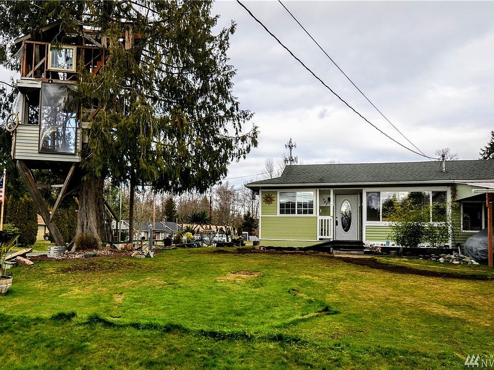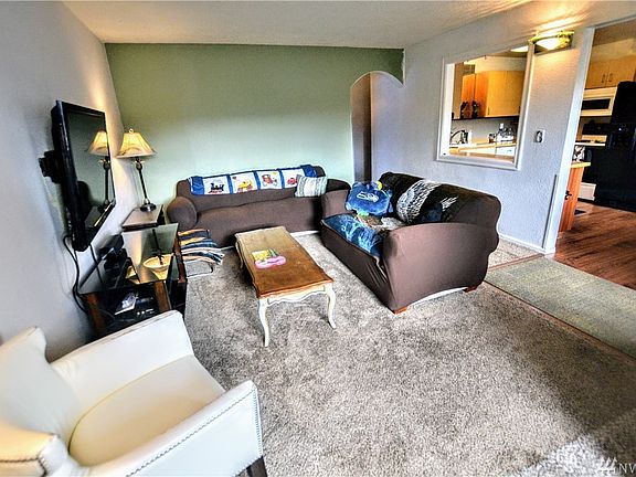 Open floor plan 1,200 sf, 3 bedroom, full bath rambler w/large yard. Covered porch entry & leaded glass front door. Bright and sunny LR with beautiful bay window. Extra maple cupboards/counters in lg kitchen with eating space. Sep laundry/mud room. Corner lot with garden beds plus room for storage shed or greenhouse. Long driveway for off street parking. Master converted 2 BD into 1 BD w/office - can be changed back. Convenient location-close to I-5, schools, parks, shopping and transportation.