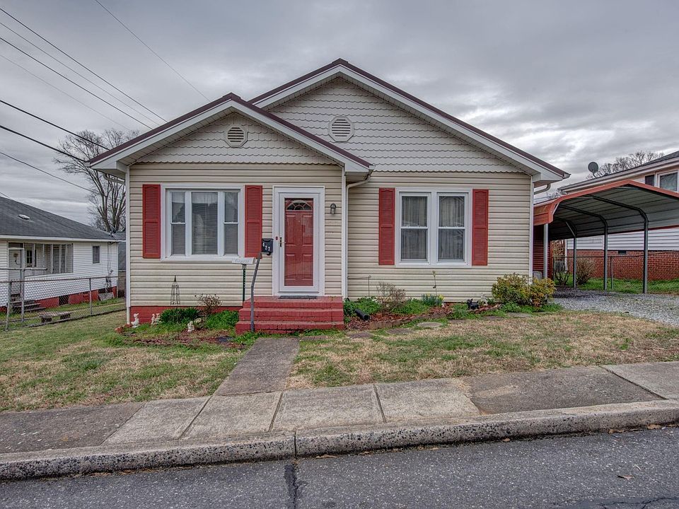 Cute bungalow with lots of possibilities. 2 large bedrooms and one full bath. Per owner, there could be hardwood floors under carpet. Huge kitchen with lots of cabinets and nice size eat-in area. Fenced in yard with storage shed.