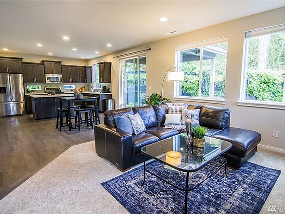 Absolutely stunning Craftsman home just steps from Mill Creek Town Center! Meticulously maintained, this home shines from every corner with quartz counters, espresso cabinets & so much more! Complete privacy surrounded by greenbelt with covered back patio area - every inch perfect to enjoy & entertain year-round. Impeccable landscaping around entire home. Custom stone steps lead to hot tub w/ ultimate luxurious privacy. A/C. Day-spa like master. Not one detail missed. This home will NOT last!
