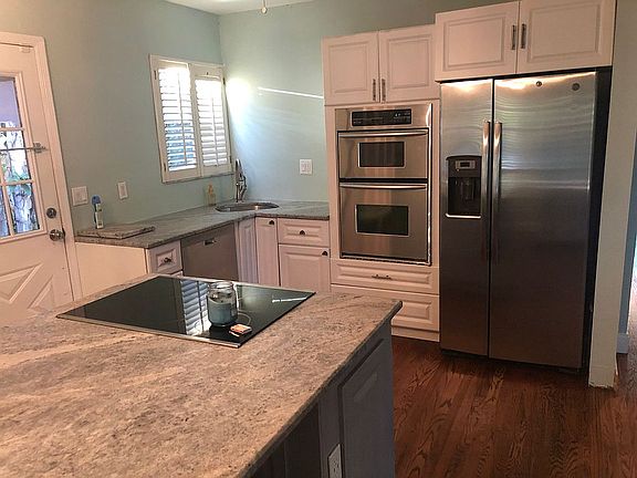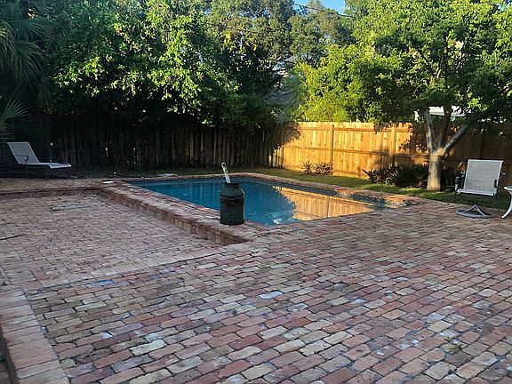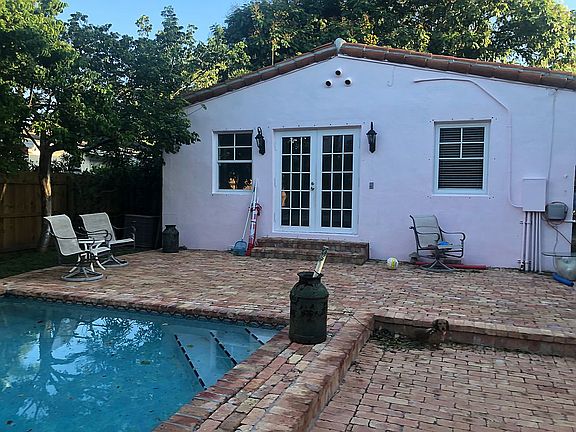Beautifully charming one story Mediterranean Style home with original hardwood floors and pool! This elegant three bedroom, one bath home with cabana with kitchen and bath. Features an updated and open kitchen, with Granite Counter Tops and Stainless Steel Appliances and large bedrooms. A The Pool and Chicago brick patio create perfect backyard for entertaining all year long. The attached carport makes it easy to come and go.