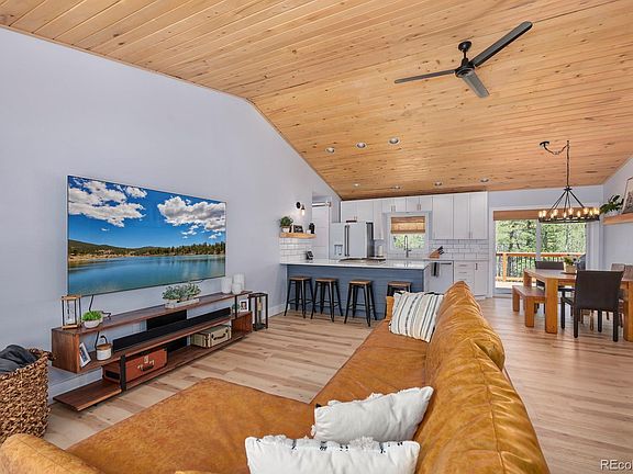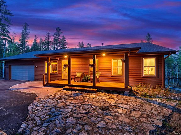 Welcome home to this impeccably updated & maintained 4+ bed / 3 bath home in the desirable Missouri Lakes neighborhood. A covered porch entrance greets you onto the open floor plan main level with wood floors throughout, entertainer's dream kitchen, main level master suite, guest bedroom, full shared bath, & bonus office. Remaining 2 bedrooms & full bath reside in the fully finished, walk-out, lower level with wood stove, wet bar, & large family area. Privately set on ~1 acre & nestled in well mitigated spruce & aspen, you will watch from your elevated rear porch as the seasons play out across the landscape. The usable acreage at the rear of the home is fully fenced & ready to entertain family, friends, & furry companions w/ a new hot tub. 2 car garage with an oversized door opens onto a level & paved driveway w/ southern exposure - offering easy maintenance & access. All this & a neighborhood with amenities including stocked fishing lakes, road plowing, close proximity to the Front Range, & low Gilpin taxes.