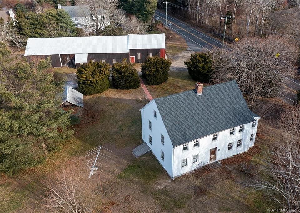 Rarely found CIRCA 1690 Early New England 5 bay facade Colonial on 4.83 acres of rolling land w/idyllic vistas located on the historic BOSTON POST ROAD. Includes 4000 sf barn built for farm animals but also modernized&can accommodate collector cars, contractor/earth equipment or other hobbyist activities. Rural setting surrounded by family farms& orchards yet minutes to I-95 w/an easy 2 hour commute to NYC or 1 hr to PROVIDENCE. Built 90 years before the American Revolution, this home retains some "purist" characteristics of a post & beam structure. Massive center stone chimney w/fireplaces behind temporary walls. Intricate staircase moldings&newel posts. Wide board flooring (some boards considered Kings Wood). Interior door with iron latches/hinges. Original stone/mortar foundation. For the restorationist this property has had minor architectural modifications therefore possible to bring it back to it's original state or completely modernize the interior for today's trendy living tastes. Major mechanical updates include modern septic system, vinyl siding, new roof, steam boiler, some electrical work &renovations to the barn. RU40 zone allows farming, agriculture, forestry, greenhouses,nursery&by special permit; farm stand,bed&breakfast,boarding/riding stables,vet services,antique shop,farm to table events, tennis or commercial golf clubs. Close to the wonderful Connecticut beaches, Roger's Lake& Lake Pattagansett. Commuting distance to US Coast Guard Academy& US Navy Base.