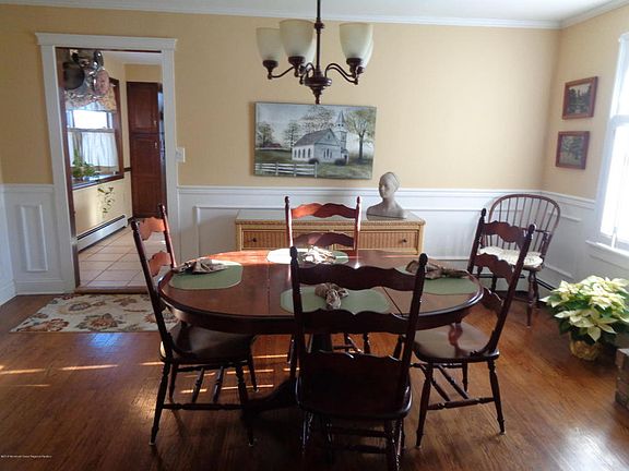 WELCOME to this cozy 3 bedroom, 2 full bath Colonial with wrap-around, rocking-chair front porch set on a beautifully landscaped corner lot. Enjoy family gatherings in the large eat-in kitchen and open family room with vaulted ceiling. Formal dining room has a gas burning fireplace and hardwood floors. Full basement provides plenty of storage space. Private fenced-in back yard with large shed. Don't miss this Oceanport gem... Perfect for buyers just starting out OR ''downsizers''!