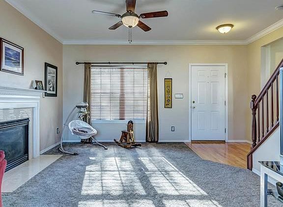 Charming 2 story with covered front porch and open-concept interior! Enter into the great room or living room/dining room combo with gas fireplace. Spacious kitchen and breakfast room with wood floor, 42 wall cabinets, newer stainless range with double ovens, newer microwave, planning desk, pantry. Sliding door from breakfast room leads to the large level yard! Upper level features a master suite with faulted ceiling, ceiling fan, large walk-in closet and a private bath with tile floor. There are 2 additional bedrooms and a large hall bath. The finished lower level is an added bonus! Newer roof and gutters. Come visit quickly - you wont be disappointed!