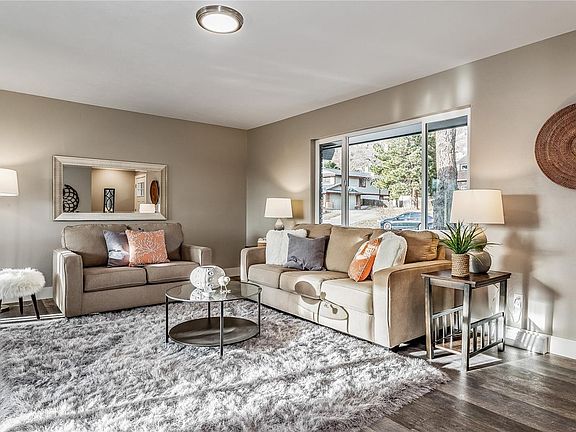 Amazing views! This remodeled 4 bedroom/2 bathroom ranch style home, with a walkout basement, sits on almost a quarter acre lot. It has just been updated with new cabinets, new quartz counters, new fixtures, new paint, new appliances, new carpet, new tile, and new laminate that looks like hardwoods but is more durable. There is also a new furnace and new hot water heater. The covered patio off of the kitchen/dining area has amazing views of the mountains and the city.