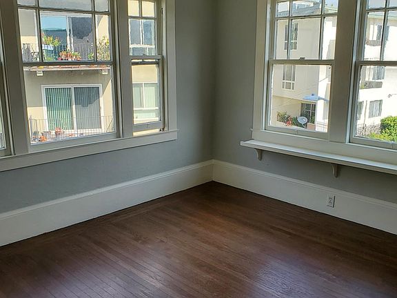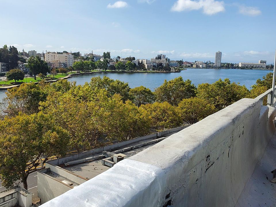 Huge roof top deck with spectacular Lake Merrit and hills view!! 1920s building. Roof top apartment with 600 sq.ft. roof Harwood floors, newly painted, extra space for office area. One minute walk to lake and Grand Ave shops. Must have good credit. gas and electric