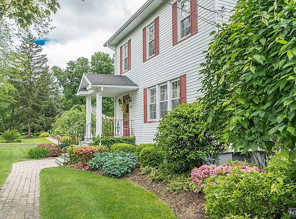 Welcome to this immaculate, lovingly maintained Colonial on almost an acre of park-like property. Potential to lay driveway to Mills Place cul-de-sac from the backyard to garage; short walk to highly rated Eisenhower Middle School. First floor offers a spacious formal living room with fireplace and formal dining room, both graced with original woodwork, bright modern eat-in kitchen, powder room and family room surrounded by windows. The second floor offers a master bedroom, bright full bath, and two additional bedrooms. Open feel from high ceilings and wide staircase & doorways. Hardwood floors under carpeting throughout. Enjoy gorgeous views of the gardens from the ground-floor sunroom. Walk-up attic and full basement boast ample storage space. In-ground sprinkler system fed by private well, long driveway with a turn-around, two-car garage, and a versatile 60x20 shed (as-is) add ease of access and lifestyle. All new windows, move-in condition- or expand to build your dream home!