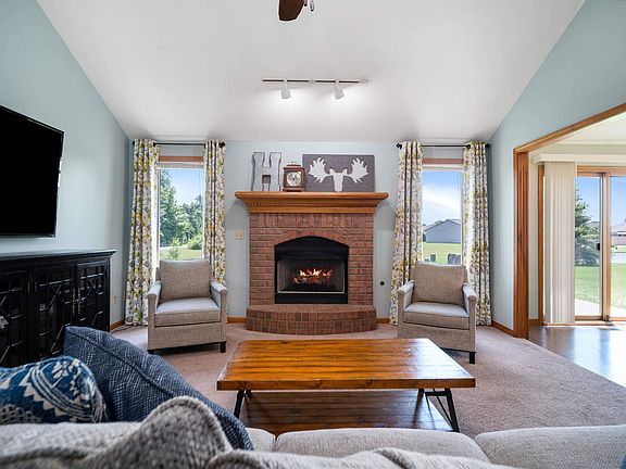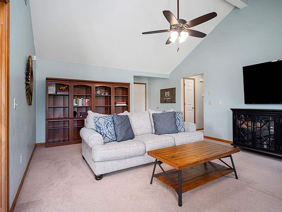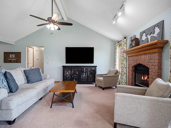 You do not want to miss this adorable ranch in Northwest Allen County! As you enter the home you will quickly fall in love with the beautiful brick fireplace and mantle, cathedral ceilings, updated paint colors, and primary bedroom with ensuite. This 3-bedroom, 2-bathroom home is located next to the Pufferbelly Trail and is less than a mile from the YMCA. Enjoy easy access for walking or biking on the trail. The large backyard and tree-lined lot make a perfect space for entertaining and playing outside! The eat-in kitchen has counter seating and plenty of room for a dining room table. Schedule your showing today as this home will not last long!