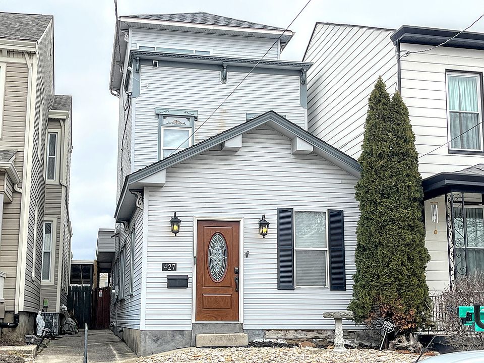 Love the Lifestyle! Simply Delightful! Stunning Cincy Skyline View from the Balcony of the 3rd Floor Owner's Retreat! Ready for that Fun Lifestyle! Filled with Unique Architectural Finishes & Trims Throughout*Arched Openings*Designer Ceiling Lines*Cathedral & Curved Ceiling Lines*Skylights*Abundance of Hardwood Floors*Newer Remodeled Kitchen with White Cabinets/Granite & Stainless Appliances Including a Chef's 5 Burner Gas Stove! Elegant Dining Area with Custom Wet Bar*Fun Built-Ins Throughout*Entertaining Maintenance Free Fenced Back Yard with Pergola, Covered Patio, with Hardscaping for No Maintenance*Party Lights & Decorative Pathway to the 2 Car Parking from the Alley Access*Fun Amenities Include Auto Nest Thermostat (turns on & off automatically)*Water Purification System at Kitchen Sink*Brand New Water Heater*All Just a Short Distance to Boutiques, Cafes, Breweries, Restaurants, Newport, Covington & Cincinnati Venues! Heating/AC Systems Just 3 Yrs New*One Year Home Warranty Included for New Owner*Come Enjoy the Lifestyle!