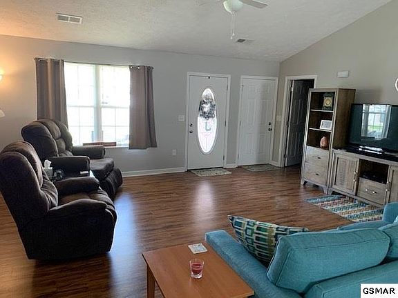 Wonderful home in established Dogwood Trace Subdivision in Sevierville only half mile from the Parkway! This home offers an open concept great room with cathedral ceilings; ceiling fans; luxury vinyl plank throughout which maintains a comfortable temperature and is waterproof; ceramic tile in all wet areas; large 2 car garage; and best of all...one level, so no stairs! This terrific split bedroom floor plan has large master bedroom and walk in closet; master bath with double vanities and double seat shower. The kitchen appliances remain, including an almost new side by side refrigerator (only 1 year old). Interior of home has been freshly painted and nothing hung on walls! Due to job transfer, Sellers are relocating, but love this neighborhood and the home. Come view this super clean, well maintained home close to all the area attractions. (Mask must be worn when viewing as sellers still occupy the home). Seller would prefer to move no earlier than 12/15 due to moving companies not available.