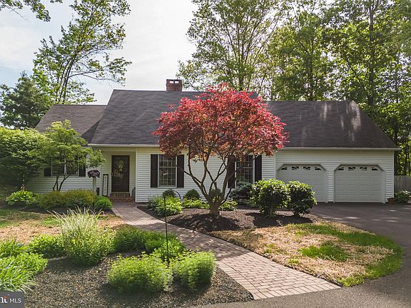 Welcome home to this one-of-a-kind custom cape-cod nestled on nearly an acre of partially wooded seclusion! Truly a gem where pride-of-ownership abounds both inside and out. Built by local custom builder Wilbur Hendricks and tastefully updated with all the modern amenities. The professionally designed lit, brick walkway leads you into the flagstone entry foyer. Many custom features will be apparent throughout the home, such as crown moldings, 5" baseboards, 3"maple hardwood flooring, oak tread stairs, and Anderson windows (double-hung). The ceramic tiled eat-in-kitchen is complete w/ Chellow custom cabinets, a Kitchen-Aid ceramic cook-top, and granite counter-tops. Kitchen flows into beautiful brick hearth family room with built-in bookshelves on either side. Sliders lead to the expansive 2-tiered patio, where many summer nights will be enjoyed in this private oasis of outdoor living complete w/ side gardens. Main floor laundry room w/utility sink and plenty of storage and entry way to 2-car garage where the pull down attic stairs offers additional storage. Main floor offers primary suite with luxurious granite and ceramic tiled bathroom and walk-in closet. Second floor has hardwood hallway, tons of closets, and eaves for storage that connect two rooms. So many closets on second floor with one bedroom featuring a large walk-in closet. Basement includes shelving and lots of great storage with outside entrance to patio. Additional outside features include a 10x16 shed and an expansive paved driveway for parking or play. Schedule your showing today! Open House overflow parking across street at Indian Creek Foundation on Cowpath Rd.
