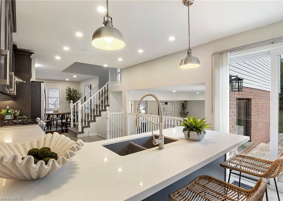 This fully renovated backsplit offers the perfect balance of style, function, and location. With all four levels upgraded, it boasts 2,634 sq. ft. of thoughtfully designed living space made for everyday family life. From the inviting front porch to the bright, open interiors, every detail has been updated to provide comfort, ease, and peace of mind. The home flows seamlessly with open living areas, modern finishes, and warm natural light throughout. At its heart is a stylish kitchen and a breakfast bar overlooking the cozy family room with large windows and a gas fireplace—a natural gathering spot for family and friends. With 3+1 bedrooms, 4 full bathrooms, a finished basement, and flex space for a home office or guest room, this home adapts easily to your lifestyle. And we can’t forget the additional 600 sq. ft. crawl space with 5-ft ceiling height, offering incredible storage—no crawling required! Outside, the oversized, private backyard is a rare find—whether you dream of barbecues, lush landscaping, or a pool, this space is ready to bring your vision to life. Located in one of the region’s most sought-after neighbourhoods, this is a community where families put down roots and rarely want to leave. You’ll be steps from two top-rated schools, making daily routines simple and stress-free. Add in nearby parks, Grand River trails, shopping, recreation, and easy highway access, and it’s easy to see why this area is so coveted. The owners invested in premium updates with done with care and quality. Updates include: Furnace & A/C (2019), Kitchen (2021), Bathrooms (2022), Windows & California Shutters (2022), Garage Door & Opener (2022), Fence & Resodding (2022), Finished Basement (2022), 200-Amp Panel + EV-Ready Garage (2022), Roof & Eaves (2023), Water Heater + Washer (2025). + MORE!! This isn’t just move-in ready—it’s a rare opportunity to live in a fully updated home in a community that embraces connection, convenience, and lasting memories.