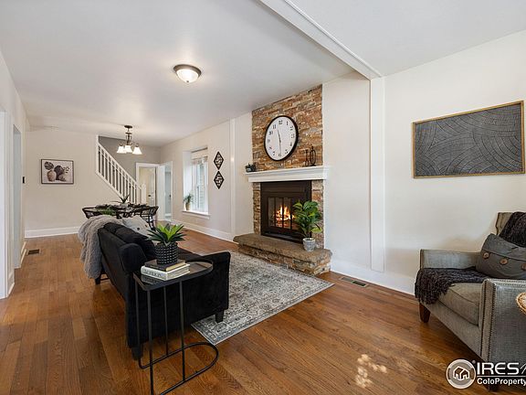 Charming DOWNTOWN CUTIE....early 1900s home located just minutes from Downtown Loveland! Easily bike or stroll to the Foundry & all the vibrant life featured in the Downtown District. This updated gem blends character with modern convenience, featuring original architectural details, a cozy wood-burning fireplace, and beautiful hardwood floors. The home boasts new carpet throughout and an oversized detached garage with a separate workshop or storage space. Entertain on the expansive patio or enjoy the fully fenced yard with mature landscaping. Perfect for those who appreciate timeless charm and a prime location!