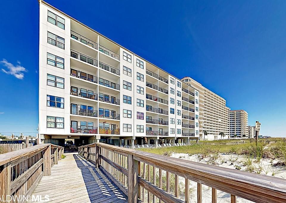 ALL ASSESSMENTS PAID!!! Two bedroom, two bathroom condo right in the heart of Gulf Shores! Walk to all all of the local restaurants and shops! Located on East Beach you are just a few short steps to the beach. This condo has recent updates including granite countertops, nice coastal decor with ample seating and dining space. It is equipped with a fully stocked kitchen complete with everything you need to keep this rental running in tip top shape. The condo is set up currently to sleep 6 with a King bed in the primary bedroom, a queen and twin bunk beds in the second bedroom. This has been fantastic rental and other units with similar views and floorpans have brought in as much as $70,000 per year in gross rental numbers.