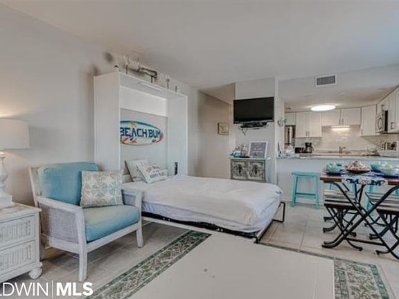 This beautifully remodeled unit is a must see!!! Prime location to walk to restaurants and shopping and The Hangout and public beach area for festivals! Unit has a sleeper sofa in the living room and a murphy bed that pulls down to comfortably sleep 6 people in the unit! Updated stainless steel appliances and beautiful granite countertops! This gulf front complex has outdoor pool, grilling area and boardwalk over the dunes to the beach with outdoor shower. HVAC, hot water heater and front windows were recently replaced.