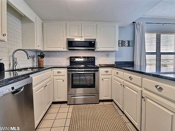 "BEACH SIDE, GULF SIDE CORNER UNIT" with 1 bedroom and 1 bathroom. This unit has stainless steel appliances and a stackable washer and dryer. Beautifully decorated with a fresh clean coastal feel. It also has 2 private balconies, one with a beach view and the other with a pool view. You can lie in the queen bed and listen to the sound of rolling waves. Island Sunrise is centered in the heart of Gulf Shores. You can easily walk to restaurants, shops and so much more. This complex has an outdoor pool, a covered veranda with BBQ and a picnic area. Also there is an elevator and stairs.