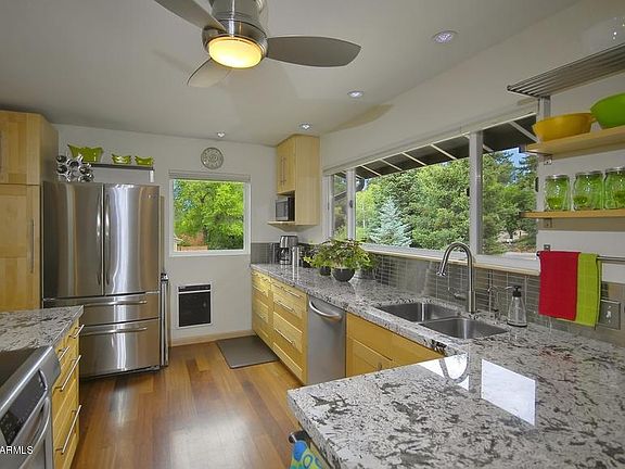 Welcome to an extraordinary Green and Eco Friendly home located near the Flagstaff Historic District and just 5 short blocks from Downtown Flagstaff's Heritage Square. Much more than a home, this is also the location of the East Cherry Inn B&B. The East Cherry Inn B&B has been the destination for those seeking a private getaway for about 20 years. This 3,229 square foot hillside beauty has been thoughtfully updated with organization and energy efficiency in mind. The multi-level floor plan, with 5 entrances and extensive outdoor living space, lends itself to continue to be used as a Bed & Breakfast, Executive Rental, or an amazing private residence for you and your extended family. The home sits on two City lots (1/3 acre) which provides ample space for you and your guests. See more...