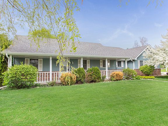 Nice one owner ranch in a beautiful location in Yorkville! Just imagine sitting on this perfect front porch, sipping lemonade or your morning coffee, bird watching or just enjoying the view of the beautiful mature trees~Family room has vaulted, beamed ceilings and a patio door leading to the deck~Eat in kitchen has table space and an island~All appliances, including wine fridge, stay with the home~Split floor plan gives the master bedroom some privacy away from the west wing of the home~Finished basement has a full bathroom~Large storage space in basement (49X11)~2 1/2 car garage~Roof new in 2013,gutters 2016, fresh paint in most rooms, appliances new in 2015~Home Warranty Included~Make your move today!