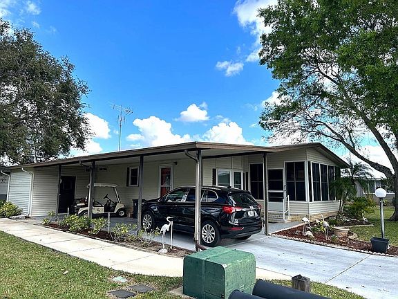 2BR 2BA Completely Furnished 960 sq ft home. Turnkey . Laminate floors, Covered carport, windowed lanai, Large vacant lot next-door, front covered patio, large shed, dining room,Golf Cart included.