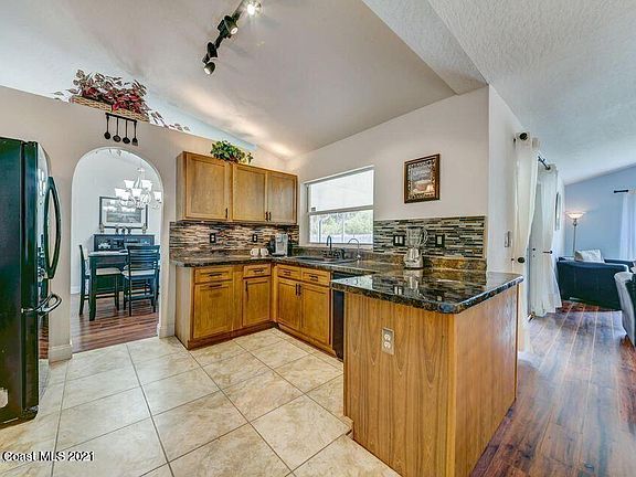 BEAUTIFULLY UPDATED BLOCK HOME on almost HALF-ACRE FENCED LOT, located just southwest of Bayside Lakes. Park your boat or RV in your yard, and tinker in the small workshop/shed and screened-in 2-car garage, no HOA restrictions!! This home has the WOW factor with beautiful architectural details, cathedral ceilings, lots of windows and natural light and great views of the huge backyard. Updates include: freshly painted inside & out, laminate wood & tile floors throughout (no carpeting), brushed-nickel lighting fixtures & fans. Kitch has wood cabinets, glass & stone backsplash, under cabinet lighting. Both baths have been remodeled! Master Suite w/bay windows, spa-like multi shower heads, jetted tub, dbl sinks. Storm shutters, Security System...and more New roof 2020, New A/C 2017.