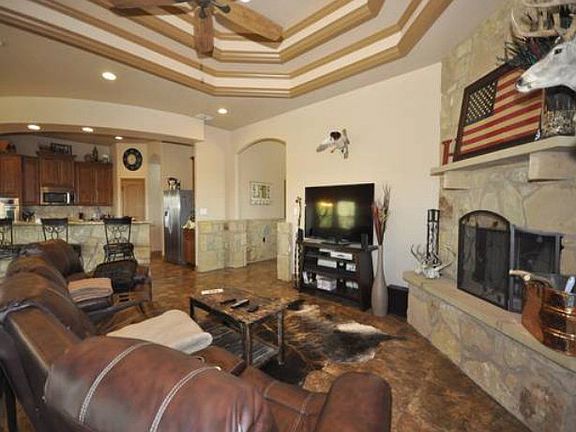 Amazing custom home on almost an acre. Beautiful Hill Country view, over 500+/- sq ft of covered patio, stone and stucco exterior, mature trees, stone wainscot in the entry, breakfast bar with stone, high ceilings,fans, large walk in closets, breakfast bar, utlity room, stone fireplace, carpet and tile, in-law plan, very open, amazing master suite, gorgeous kitchen...do not wait this home will not be on the market long! Quality throughout!