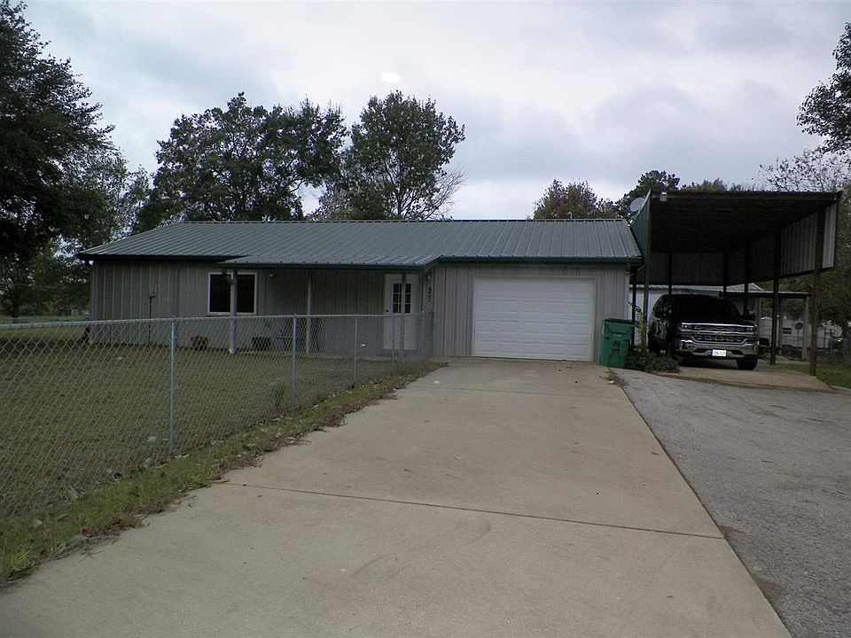 Relax on the screen porch of this energy efficient home with New London city services in the West Rusk school district. Huge family room accents the open concept of this home of metal construction with CA/CH. Garage is also insulated with plenty of storage in utility area. Could easily convert to 2nd bedroom. 24x36 insulated shop complete with lights, 220v connections, half bath & overhead door. Shop and home are on slab foundations.Includes concrete drive and detached RV carport. All on fenced 1.275 acres!