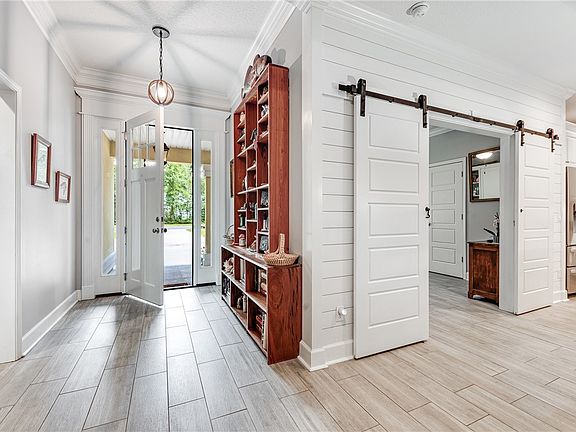Beautiful 4-Bedroom Home in Riverfront Gated Community with docks and boat ramp on 1 Acre Lot: Located in the sought-after gated community of Misty Harbor, this well-designed 4-bedroom, 2-bath split floor plan home sits on a spacious 1-acre lot and offers a perfect blend of comfort and functionality. Built in 2020, the home features an open layout with wood-look tile flooring throughout the main living areas and carpet in the bedrooms. The 4th bedroom, tucked behind barn doors, is ideal as a guest room or home office and includes custom cabinetry with shelving and a built-in Murphy bed. The kitchen offers granite countertops, island with storage on both sides that also serves as a breakfast bar, stainless steel appliances, a pantry, and ample cabinet space, flowing naturally into the living and dining areas. The primary suite features a tray ceiling, double vanity, soaking tub, separate tiled shower (no glass needed), water closet, and a spacious walk-in closet with solid wood built-ins. Additional highlights include an interior laundry room with cabinets and hanging space, crown molding throughout, a courtyard-entry garage with T-111 walls—perfect for easy hanging—and pull-down attic access for extra storage. Sliding doors open to a screened, covered porch with ceiling fans, leading to an open patio ideal for grilling. A fenced backyard encloses part of the property, but the full acre extends well beyond the fence line. A rare opportunity--boat slip B2 comes with the purchase! Misty Harbor amenities include a junior Olympic pool, clubhouse, tennis courts, boat and RV storage, picnic areas with firepits, playground, walking trails, and access to a private marina and community dock. Located just minutes from I-95 and an easy drive (apx 14 miles) to Kings Bay Naval Base, downtown St. Mary's, Jacksonville International Airport, and Chick-Fil-A is just 10 miles away-this home offers coastal living with privacy, space, and style. NO city taxes, NO flood insurance required