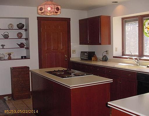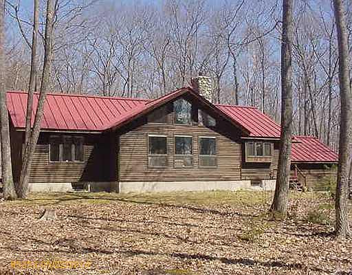 Unique energy efficient home located on 8 peaceful wooded acres near Colby trail system. Features relaxing screened porch, sunlit livingroom with cathedral ceiling, wood floors, fieldstone fireplace with wood stove insert. Wonderful cherry kitchen, newer metal roof. 2 bedroom septic design.