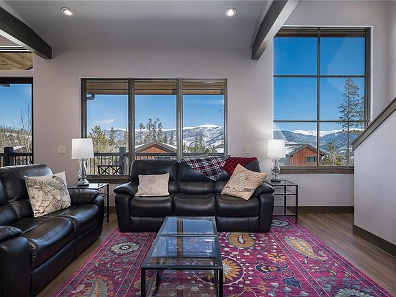Enjoy all the mountains have to offer with this mountain modern upgraded, luxury duplex. This unit includes 3 ensuite bed/baths plus additional bedroom and bathroom on entry level for great privacy, heated 2 car garage and 2 large decks. Large windows throughout the unit provide ample light and best of all, views of Lake Dillon, Buffalo Mtn and Continental Divide. Hiking and snowshoeing trails right outside the door await you! Great HOA amenities include clubhouse, pool and hot tub access.