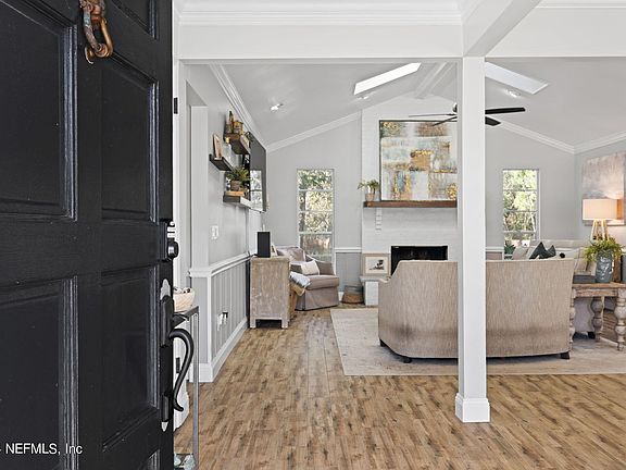 This renovated home sits on a spacious, half-acre plus lot with no HOA or CDD, making it the ideal spot to bring your RV, boat, and all your favorite toys. Tucked away at the end of a quiet cul-de-sac, you'll enjoy privacy and freedom while being just minutes from all the conveniences of Fleming Island. Step inside and find a completely updated interior that's sure to impress. The bright and modern kitchen boasts stainless steel appliances, granite counters, white cabinetry, and a large center island with seating - perfect for gathering and entertaining. A stunning white brick fireplace and cathedral ceilings are the focal points of the open and inviting living room and connected formal dining area. The owner's suite is a true retreat, complete with its own updated private bath. Wood-look tile floors and upgraded lighting throughout the home add to the casual, modern elegance of this home. Outside, the huge, fenced yard offers space for all your outdoor activities and storage needs Please see full list of upgrades in documents tab.