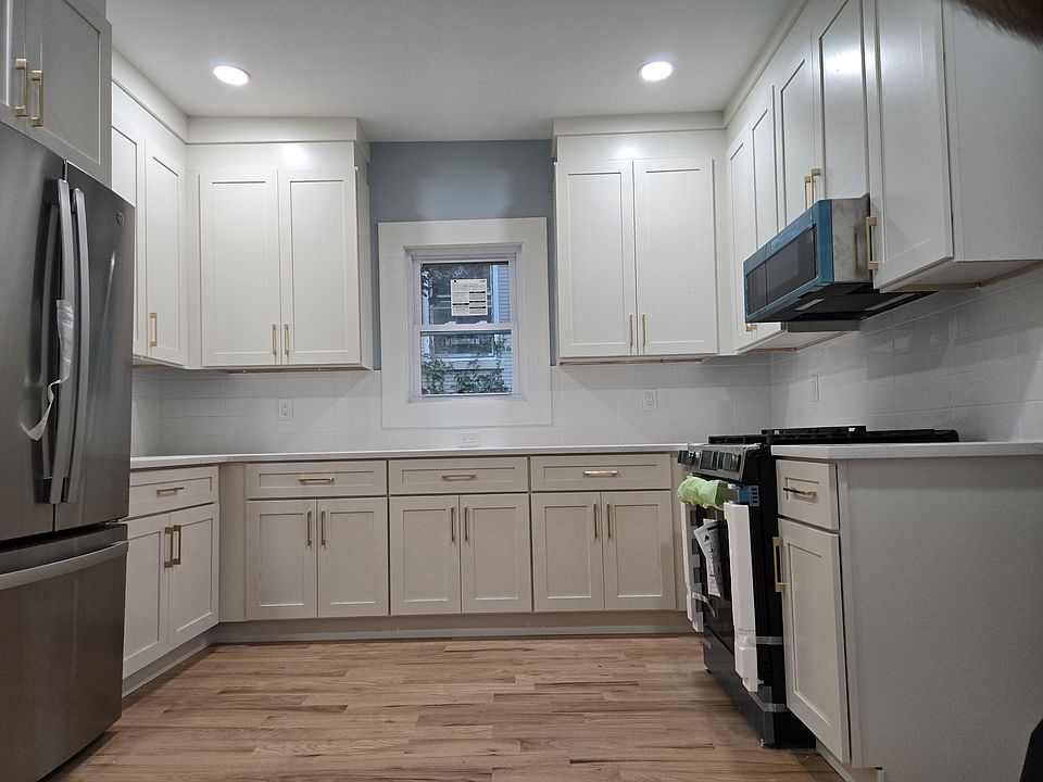 Nice size large single family home, on a quiet block. Centrally located. Hardwood floors throughout, central air and heating, 2 zone. Recessed lighting throughout. New kitchen, and stainless steel appliances, quartz countertops, with backsplash. Washer dryer,. Extra storage in basement. Large yard. Tall ceilings first floor. New windws and Hvac. This house will not last long, come take a look before it is gone!