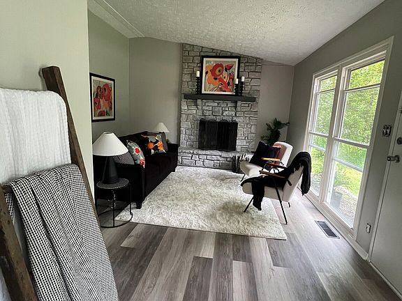 Remodeled and Ready for new owners. New vinyl plank flooring throughout the whole home. Kitchen was gutted and remodeled with the most tasteful design from slow close drawers, spice rack pull out, Samsung Bespoke appliances, work station sink with included colander & cutting board. Open concept to family room with stone fireplace & large windows. Full bathroom has new ceramic tile surround on the tub/shower. The backyard is spacious with a large concrete patio and shed. The detached garage has a separate electrical panel and extra storage.